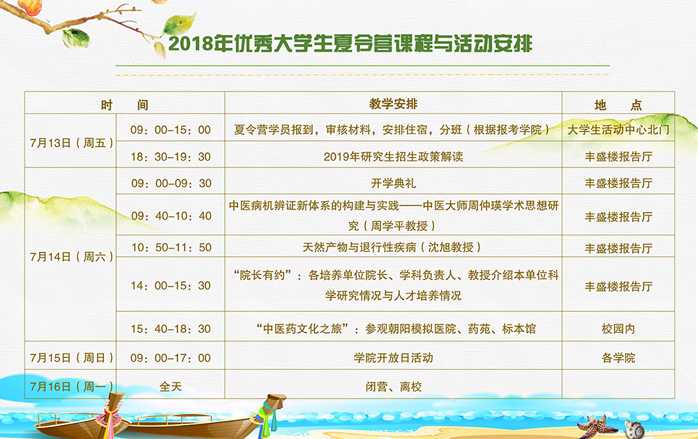 2018年优秀大学生夏令营课程与活动安排